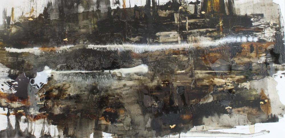 Værket er udført med akryl, alkohol ink, gesso, shellak, kaffe og ArtResin